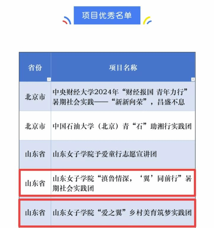近日,2024年大学生社会实践成果“千校千项”网络展示活动获奖名单公布。我院“滇鲁情深,‘翼’同前行”暑期社会实践团、“爱之翼”乡村美育筑梦实践团从全国数千个团队项目中脱颖而出,荣获2024年全国大学生社会实践成果“千校千项”网络展示优秀项目。下边让我们一起来看一看团队的精彩故事吧!