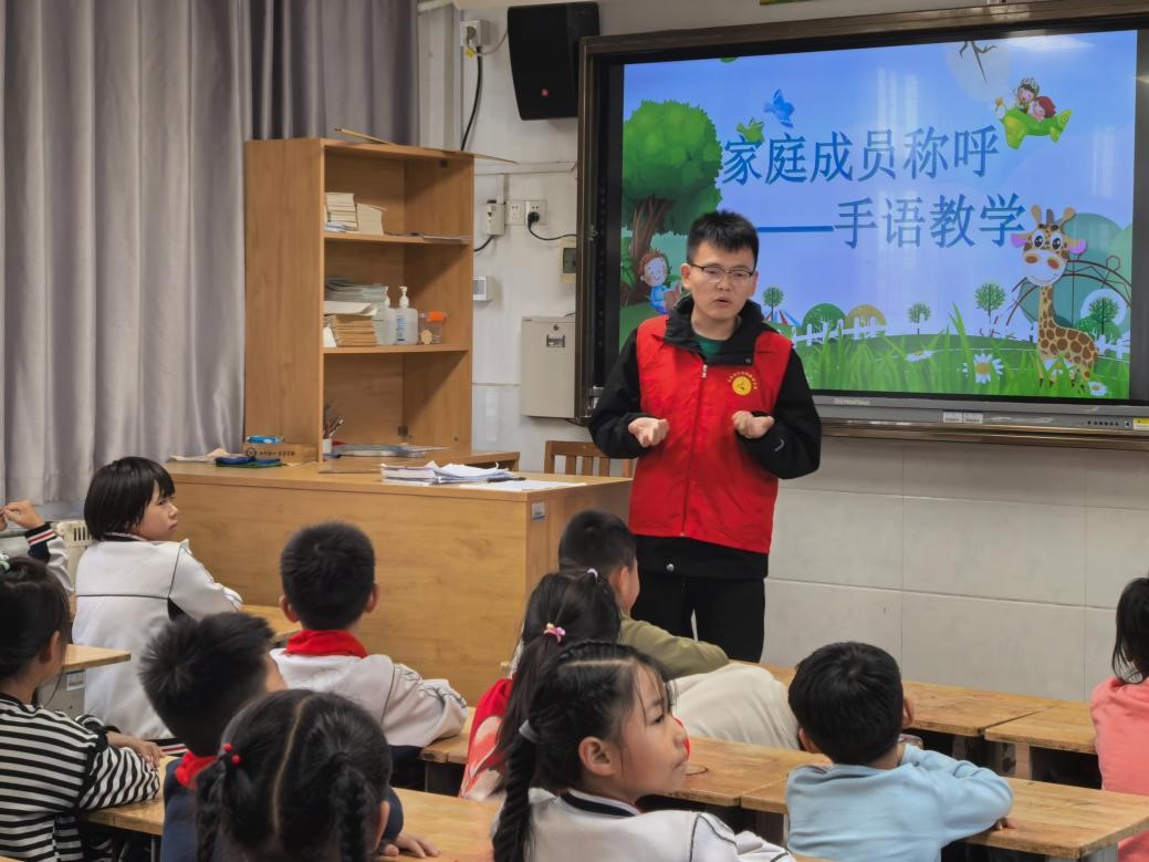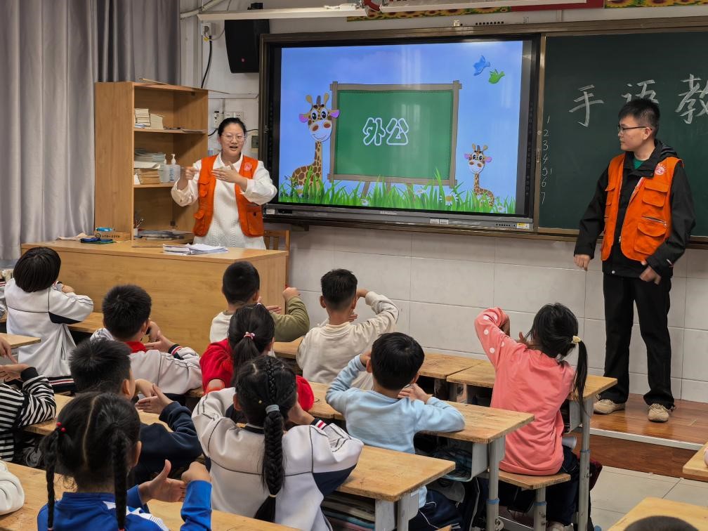 手语,不仅是一门特殊语言的学习,更是一种爱的传递。在手语课堂上,志愿者以家庭成员的称呼开始,进行手语教导,孩子们纷纷拿出小手,跟随志愿者舞动。随后,志愿者进行《明天你好》的歌词教学,将手语与歌词相配合,给孩子们带来手语新体验。在志愿者的悉心教导下,孩子们积极配合,手语在爱的传递间内化于心。孩子们通过学习手语,在内心种下爱的种子,与更多需要关爱的孩子搭建起爱的桥梁。