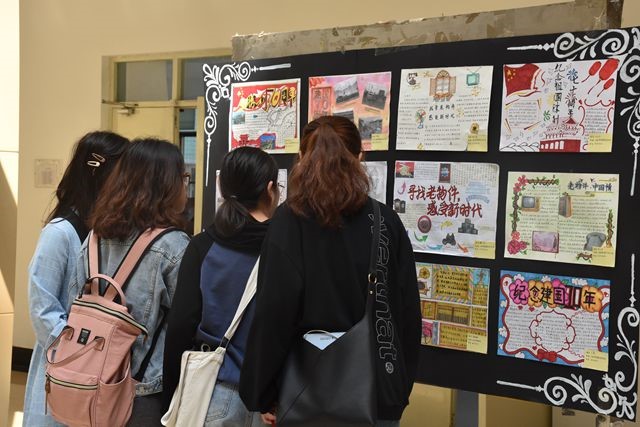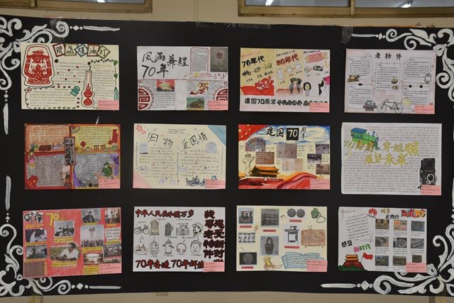 此次大赛以新中国成立70周年为契机,以“找寻老物件·感受新时代”为视角,号召同学们回顾70年历史变迁,以手抄报的形式感受今昔对比,讲述心声,献礼祖国。走进展览区,那些刻满岁月痕迹的老物件图片映入眼帘,无论是“搪瓷杯”、“邮票”、“粮票肉票”还是20世纪50年代的结婚标配“三大件”,这些都经历了历史和时代的变迁,渐渐退出历史舞台,化作了人们心中美好的回忆,一件件作品串联起来,便构成了一幅新中国成立七十周年的变迁图。手抄报优秀作品一经展出,立即吸引了学生们驻足观看。