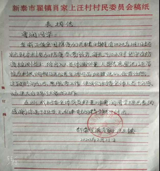 防疫战争悄悄打响,虽远离战斗的主战场,我也想为自己身边的人做出我应有的贡献。我所做的工作有协助人员排查,协助封闭管理普及防疫知识,协助物资采购分发,协助整治环境,关爱一线防疫人员家属和弱势群体。我很骄傲我能参与到工作中来,并且能在这个时期贡献上自己的一份力量,与居委的优秀党员,干部们一起,在他们的领导指导下工作,登记检查劝返外来人员,查测外来人员体温记录,并登记在册。同时也学习到了更多优秀的精神,村委的书记阿姨还给予了表扬信的鼓励,希望我可以继续将这份勇敢和精神坚持下去。