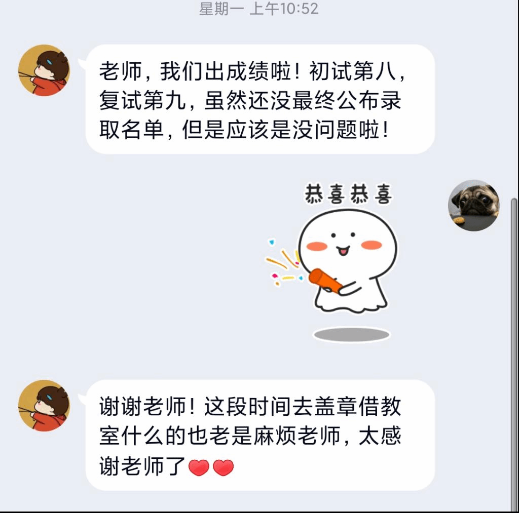 教育学院为考研学生提供了细致入微的关怀和服务,学生们纷纷感叹学院对学生的关心与支持,称赞学院的各种暖心的举动,跟老师分享拟录取的好消息。