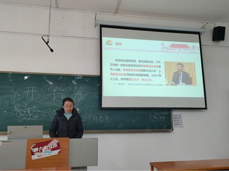 2022年是极其重要的一年,国家“十四五”规划已全面实施,党的二十大将要召开。教育学院党委副书记路敏老师以冬奥会为切入点,带领我们领悟“双奥之城”带来的民族自豪感和文化自信,为同学们讲述了别样的“开学第一课”,她指出要提高政治站位,学习体育健儿的拼搏精神,同时为同学们讲解了教师资格证认定等相关新出台政策并提出了新学期要求,激励同学们深刻诠释大学生肩负的职责使命,展现新时代中国大学生的精神面貌,成为眼中有光、脚下有路的奔跑者、奋进者。祝苏东老师告诫同学们应有鸿鹄之志,要身体力行请党放心、强国有我的口号,在时代的大潮中顺势而为,成长为德智体美劳全面发展的优秀人才。