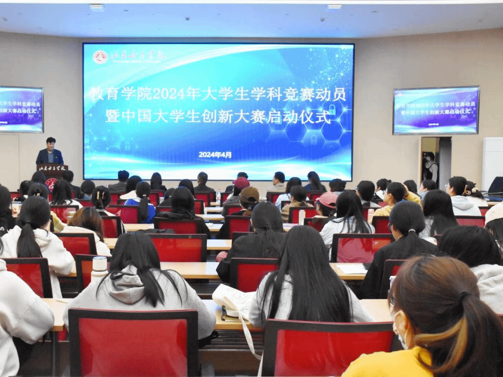 为积极响应国家创新发展战略,培养我院学子创新精神与创造能力,进一步提升人才培养质量,4月11日上午,教育学院在求真楼一楼报告厅开展2024年大学生学科竞赛动员暨中国大学生创新大赛启动仪式。教育学院全体领导班子、教研室主任、部分教师及学生代表参会,特邀创新创业学院院长助理李伟老师担任主讲,会议由教育学院副院长刘源主持仪式。