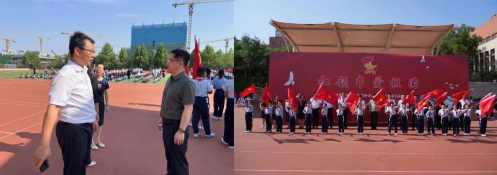 王飞副院长(主持工作)、高小焱老师走进山东师范大学第二附属中学进行慰问,在交谈中详细了解了小学教育专业学生实习学校的办学特色、学生个性发展、师资队伍建设等情况,并受邀参加了学校以“红领巾爱祖国”为主题的入队仪式。