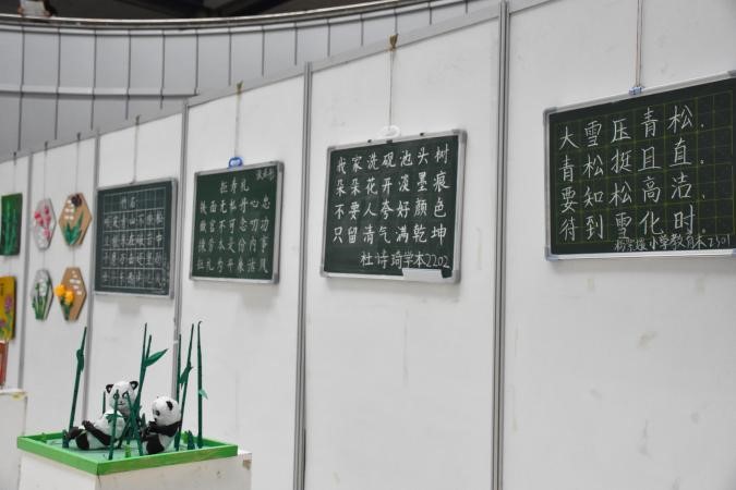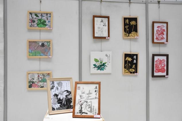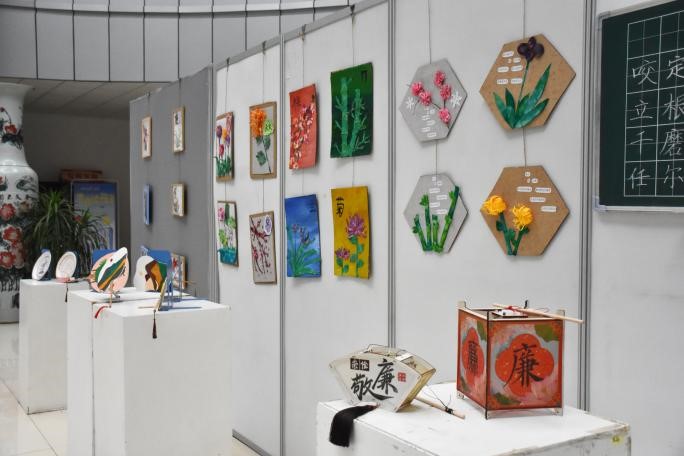 展馆内,一幅幅精美作品跃然眼前。作品紧扣崇廉尚廉主题,或清秀雅致,或舒展开阔,软笔字作品风神洒荡,不减遒逸《兰亭》;硬笔字作品苍劲有力,怀素如壮士拔剑;粉笔作品形神兼备,点画相得益彰;绘画手工作品独具匠心,质朴又不失灵动。文字各有千秋,展示着师范生们扎实的功底,写尽了风采背后更深处的意义。在前期征集的200余件作品中,经过公开评选,共选出硬笔作品24件、软笔作品9件、粉笔作品4件、绘画作品13件以及手工作品36件共86件作品用于展出。