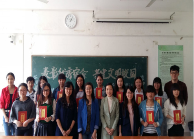 4月15日中午,教育学院在博学楼开展了“表彰优秀宿舍,共建文明校园”优秀宿舍表彰大会。教育学院田莉春书记、路敏老师、王春晓老师、陈鹏飞老师、李娜老师参加,并为优秀宿舍颁奖,田书记在此次优秀宿舍表彰大会中发言,勉励优秀宿舍,鼓舞零分宿舍向优秀宿舍学习,弘扬文明精神。 田书记对优秀宿舍、优秀班集体的成绩提出表扬,并建议优秀宿舍、优秀班集体能够在继续保持优秀的同时,主动帮助本班其他宿舍提高宿舍卫生成绩,共建文明校园,营造一个友爱的宿舍学习生活环境。表彰大会结束后,同学们对宿舍卫生要求有了新的认识,各班级卫生委员、舍长也加强了对宿舍卫生的自我管理要求,并为建设优秀宿舍,共建文明校园而努力。 本次活动旨在进一步完善教育学院宿舍卫生制度,培养学生“自尊、自重、自律、自信”的精神,树立以“宿舍为家”的观念,并加强学风建设,共创文明校园。