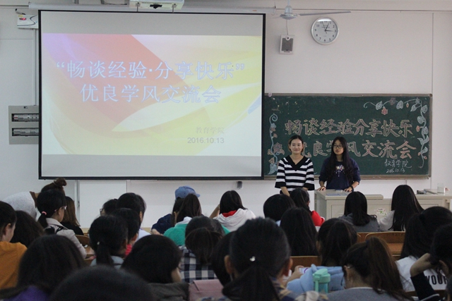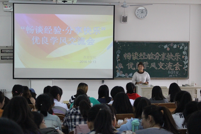 2016年10月13日,教育学院于博文楼210举办了优良学风交流会。14―16级各班班长等代表参加了此次活动。本次会议由副主席贾文玉主持。