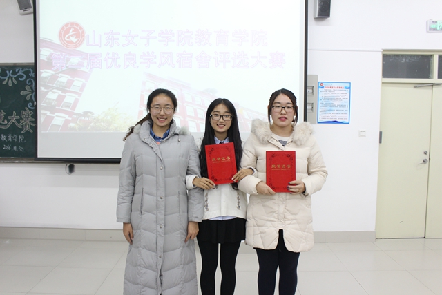 2016年11月30日晚,教育学院于博文楼208室举办了优良学风宿舍评选大赛,担任本次比赛的评委有学生会副主席桑春雨、吕巧丽等以及由各班代表组成的大众评审团。教育学院部分学生观看了本次比赛。