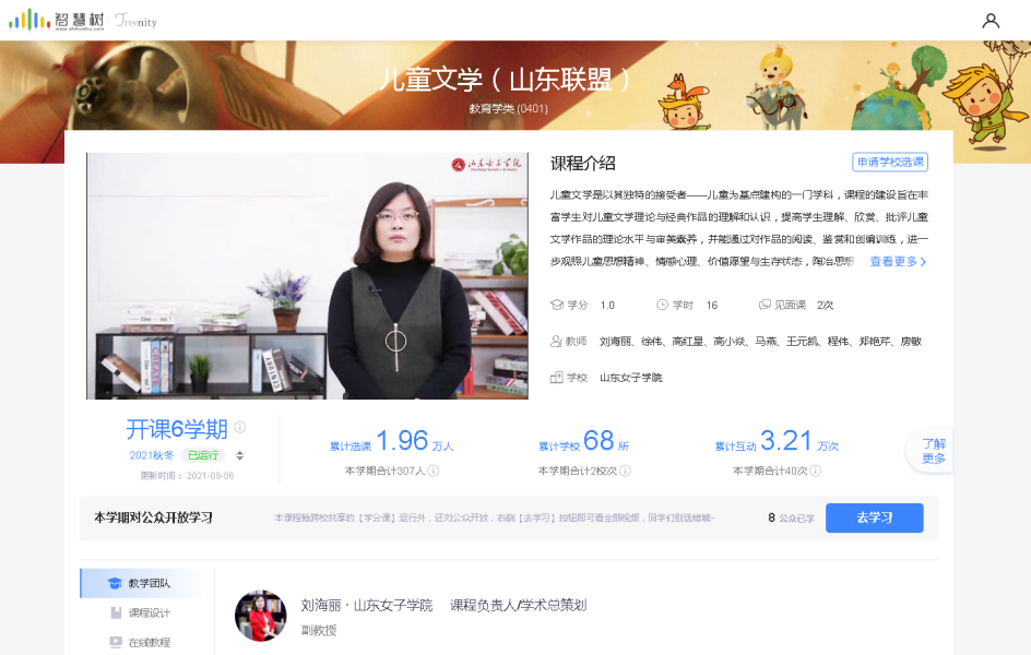 刘海丽副教授主持的《儿童文学》在山东省高等学校在线开放课程平台上线