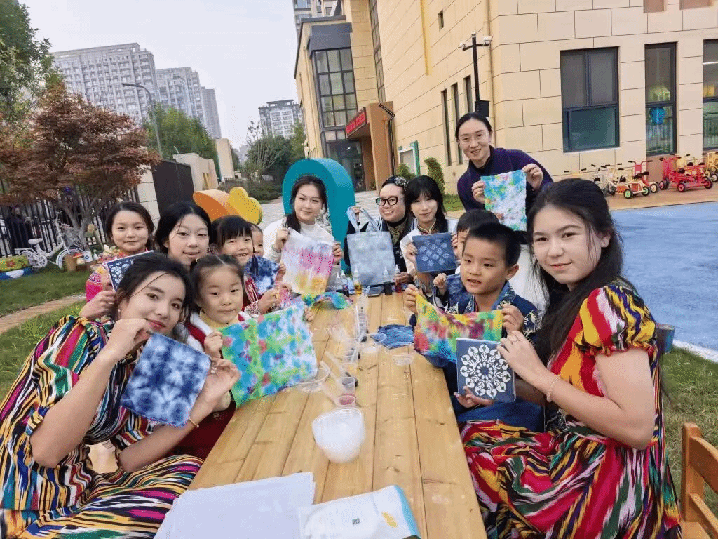 在民族文化体验环节,来自云南、新疆等多地少数民族学生与孩子们手拉手围成同心圆,共跳民族舞蹈,共品地方美食,共制简易民族手工艺。这场跨越年龄与地域的互动,以可感、可触、可玩的方式,让孩子们真切感受到中华文化的多彩魅力,在幼小心灵中深植民族团结的种子,实现了高校青春力量与幼儿情感世界的温暖连接。