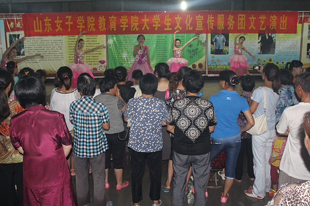 每天晚上,志愿者不顾炎热,组织村民集中在马套广场学习广场舞。还精心准备文艺演出,歌曲《父亲》《欢天喜地》《美丽心情》萨克斯独奏、广场舞串烧引起了村民的阵阵叫好,演出过程穿插智力竞猜、有奖问答、才艺比拼等游戏,志愿者为当地百姓送上了丰富的文化精神大餐。