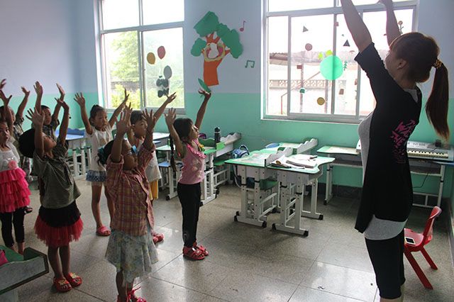 在马套小学,志愿者利用自身教育资源与留守儿童面对面交流,了解其心理需求,并分小组开展“七彩课堂系列支教活动”,内容包括:音乐,舞蹈,美工,英语,安全,辅导作业,体育游戏。音乐课上,孩子们渴望的眼神、激动的表情、稚嫩而动听的歌声留在了每一个志愿者的心里;手工课上欢声不断,孩子们用灵巧的双手展示了自己的才华,最让人难以忘怀的,是在“凉棚教室”里,40个孩子在临时改装的“舞蹈房”里随歌起舞,眼神中有着按捺不住的喜悦,那股认真学习的劲儿,让大学生倍受鼓舞。
