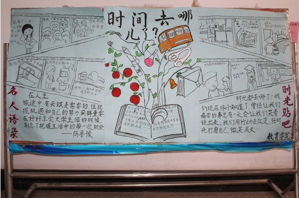 时间都去哪儿了?这段美丽的大学时光你可曾虚度?本次活动以宣传海报为开端,通过丰富多彩的漫画海报详细描绘了大学生大一的青涩、大二的懵懂、大三的成熟、大四的不舍,诉说了同学们在时间的流逝中逐渐相识相知的美好过程,直至毕业离校时看着空荡荡的宿舍回忆为结束,展现了一副详细的大学生涯画卷。曾经的时光已经流失,现在的日子要活出精彩,未来的岁月要满怀希望。