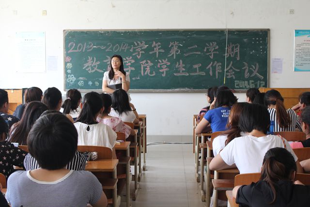 6月12日下午,教育学院在1号教学楼301教室举办了教育学院学生工作培训会议。教育学院党总支书记田莉春、党总支副书记郑全蕾,团总支书记路敏,辅导员刘晓丽、王春晓及全体学生干部出席会议。大会由团总支书记路敏主持。 首先,郑全蕾指出学生干部队伍要具有大局意识和自律意识,在实际工作中要整体推进,重点突破,建立一支素质好、业务能力强的学生工作队伍。接着,田莉春围绕习近平总书记重要讲话的精神内涵,深刻阐述了当代大学生如何强化六种意识,培养六种能力及如何协调工作中的三种关系,强调了学生干部的思想境界要与学校发展同步,共创优良学院学风等重要问题。田莉春的讲话为教育学院加强学生干部思想政治工作,尤其是对教育学院学生干部成长成才的素质要求等方面提出了更高的要求。最后,路敏对此次会议作了简要的总结,并对下一阶段的学习和工作计划做了部署。 此次会议使与会的学生受益匪浅,更明确了肩上的责任和今后的努力方向,增加了大家工作的信心和干劲,也为以后工作的开展打下了坚实的基础。(路敏)