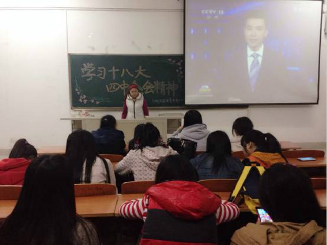 在党的十八届四中全会胜利召开之际,为深入学习贯彻落实会议精神,10月30日晚,教育学院2013级学前教育本科2班团支部于2号教学楼201以主题班会、学习交流会、访谈等多种形式,组织班级同学全面理解、准确把握十八届四中全会精神实质和丰富内涵,支部成员积极参加本次活动。 活动开始,通过一段十八届四中全会的视频,大家认真学习了十八届四中全会的主要内容。随后班长白玲玉对十八届四中全会中关于“全面推进依法治国”的内容从多个方面进行解读,畅谈自己对“法治中国”的心声,并且要求支部成员以及入党积极分子要把思想和行动自觉统一到认真学习领会习近平总书记在党的十八届四中全会的重要讲话精神上来,深入理解依法治国的重要意义,自觉遵守学校的各项规章制度,为维护校园的安定、和谐做出应有的贡献。同时其她支部成员踊跃发言,并谈了学习党的十八届四中全会精神的体会。对于青年学生应该如何将十八届四中全会精神落到实处,孔珊珊从自身实际出发表达了她的看法,她认为法治不仅仅是一种制度,更是一种文明。一方面,法治需要提高国家司法的公信力、建立司法权威,另一方面更需要提高全社会的思想道德水平和文化自觉。“作为青年学生的我们不仅仅要做到知法懂法守法,培养法律的思维方式,更应该自觉远离低俗文化,努力学习传统文化,提高文化素养和个人品味。尤其是作为学生干部,不仅仅要起到模范带头作用,更应该积极传播法治国家、和谐社会、文明个人的精神,将正能量传递给更多的同学,为实现和谐美好的法制校园贡献自己的力量。”同学们也纷纷表示,不论是在什么岗位上,亦不论是在何处求知求学,都要对国家未来的改革充满期待,对未来的发展抱以坚定信心,并立志在今后的学习、工作中积极贯彻党中央的精神,刻苦学习、努力工作,争取早日实现大家所期望的政治清明、经济繁荣、社会安宁、人民幸福的法治状态,为中华民族的伟大复兴贡献力量。 通过本次部活动,支部成员深入学习了党的十八届四中全会精神,更加深刻的领悟了党和国家“依法治国”的方针和策略,同时提醒每位同学要时刻要求自己,谨言慎行,做好一名社会主义核心价值观的践行者。