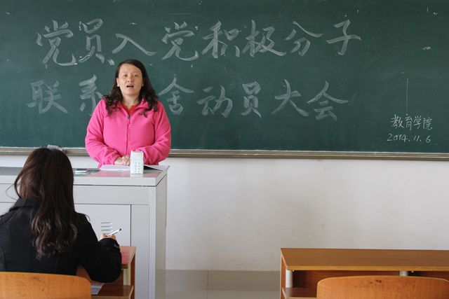 2014年11月6日下午,教育学院在普教楼402教室召开了学生党员、入党积极分子联系宿舍动员大会。教育学院党总支副书记郑全蕾、学生党支部书记王春晓及教育学院全体学生党员、入党积极分子参加了会议,会议由学生党支部书记王春晓主持。