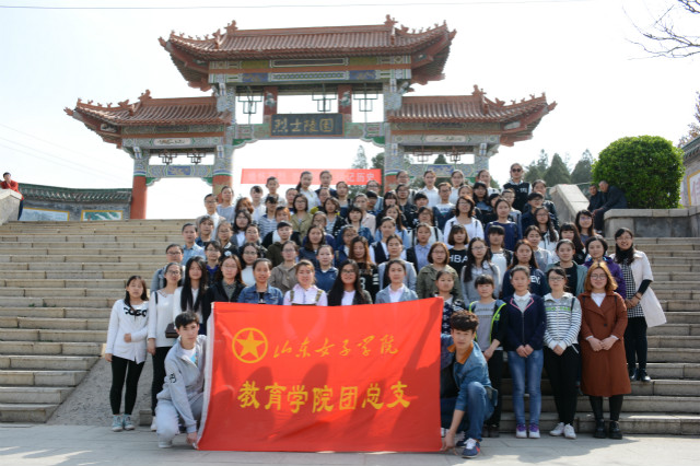 3月31日下午,教育学院团总支在长清区革命烈士陵园举行爱国主义教育基地揭牌仪式暨清明祭扫活动。仪式由山东女子学院教育学院团总支书记路敏主持,山东女子学院党委委员、纪委书记汪琦以及长清区人民政府副区长李廷正出席活动并讲话,同时为基地揭牌,此外,长清区民政局局长梁艳玲、民政局副局长房启彬、办公室主任王新强、教育学院党总支书记田莉春、团委负责人董雪以及教育学院100余名师生代表参加活动。 伴着庄严的国歌,全体师生肃立默哀,并向革命英烈敬献花篮。揭牌仪式上,长清区人民政府副区长李廷正指出,山东女子学院作为首所在烈士陵园设立爱国主义教育基地的高校,体现了学校对爱国主义教育的重视,基地的建成是校地双方贯彻落实中共中央国务院关于进一步加强烈士工作意见的重要举措,是弘扬和培育民族精神、践行社会主义核心价值观的具体行动,并强调高校建立教育基地对塑造当代大学生人格具有重要意义;学校党委委员、纪委书记汪琦也发表了重要讲话,指出爱国主义教育对于动员和鼓舞青年学生积极投身社会主义现代化建设、推动民族复兴和文明进步的重要意义,介绍了我校开展爱国主义教育活动取得的丰硕成果,同时强调山东女子学院和石麟山烈士陵园管理所共建爱国主义教育基地将进一步促进青年学生对济南光荣革命历史的了解,同时推动我校与长清区各方面的合作共建,希望充分利用社会和院校合作的机会,积极开展各种活动,引导学生不断强化爱国情感,培育民族精神,树立远大志向,提高基本素质,更好地成长为中国特色社会主义事业的合格接班人。青年学生代表表达了继承革命先烈的遗志,发愤图强,努力践行社会主义核心价值观,为建设中国特色社会主义贡献青春力量的坚定信念。之后,师生一行聆听革命烈士事迹并向烈士敬献鲜花。