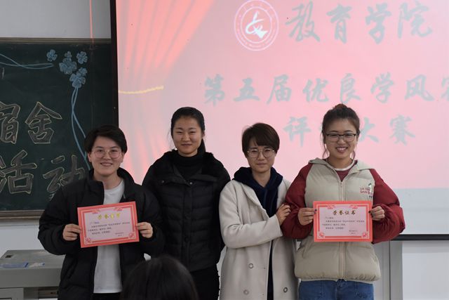 12月12日晚18:00,教育学院于博文楼108举行优良学风宿舍评选活动。教育学院学生会副主席马慧茹、记者团副团长张敬敏、办公室部长闫佳欣、宣传部部长朱潇萍、网络推广部部长杨帆担任此次活动的评委,16、17级部分学生参加此次活动。