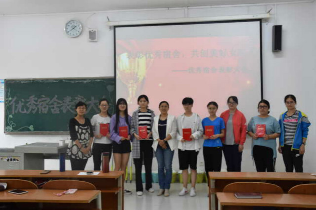 2018年5月17日13:30,教育学院于博文楼107召开优秀宿舍表彰大会。出席此次大会的有教育学院李邵妮老师、路敏老师、党总支副书记崔江宁,16、17级卫生委员和优秀宿舍舍长。