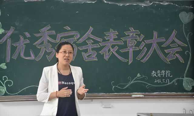 会议伊始,崔书记发表讲话,她首先对各优秀宿舍提出表扬,并指出宿舍建设的重要性。她鼓励在场同学在保持个人宿舍优秀的同时,能够主动分享经验帮助班级其他宿舍提高宿舍卫生成绩,创设干净整洁的宿舍环境,营造和谐友爱的宿舍学习生活环境。最后,教育学院43个优秀宿舍依次上台领奖留影。至此,活动圆满结束。