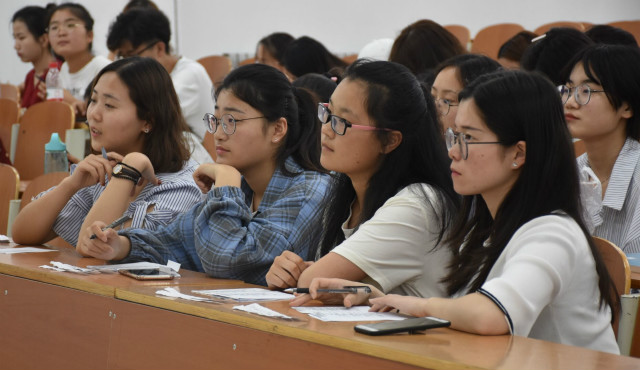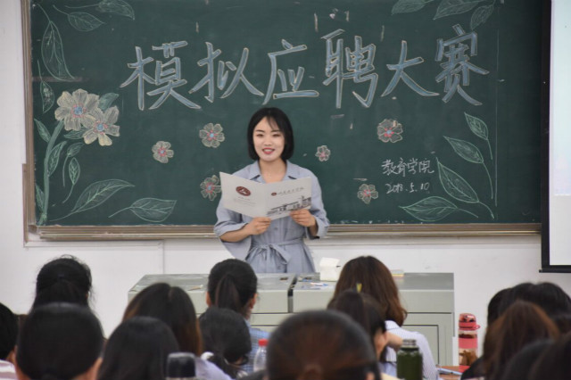 2018年5月10日下午,教育学院于博文楼108开展青春女院系列活动之“秀靓丽风采·展韶光教院”大学生模拟应聘大赛。本次比赛的评委有影音媒体部部长林晓雪、宣传部部长朱潇萍、新闻采编部部长张彬和组织部部长王真真,教育学院16、17级部分学生观看了本次比赛。