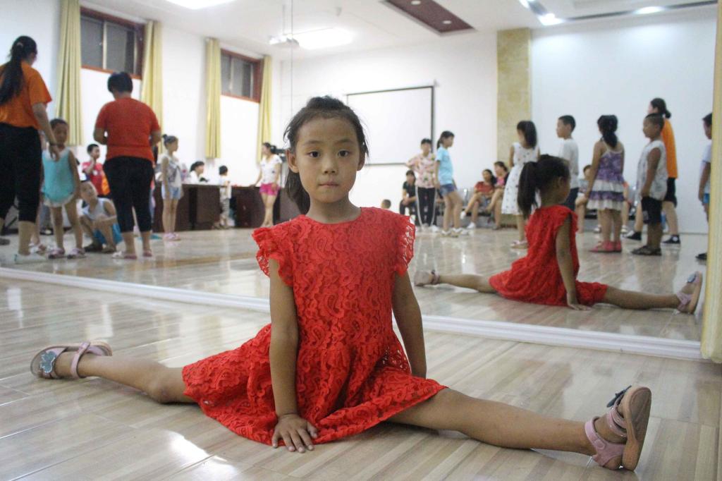 舞蹈教室宽敞明亮,小朋友们透过教室前面的镜子,好奇地打量着自己,打量着周围,舞蹈《小小兵》的律动感带动了孩子们的积极性,志愿者们为小朋友们编好队形,以舒缓的节拍、熟稔的动作锻炼了孩子们肢体的灵活性和协调性。活泼的小朋友们又迫不及待地展示自己,下腰、劈叉,以轻盈的身躯,充分展现了童年的活力。不知不觉,月上枝头,活动渐渐接近尾声。