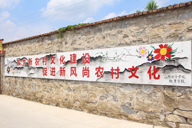 两幅印有“手拉手,心连心,女院马套一家亲”和“加大新农村文化建设,促进新风尚农村文化”的墙绘,不仅是来自女院的志愿服务者们对马套的深厚情谊,也是对马套的美好祝愿。