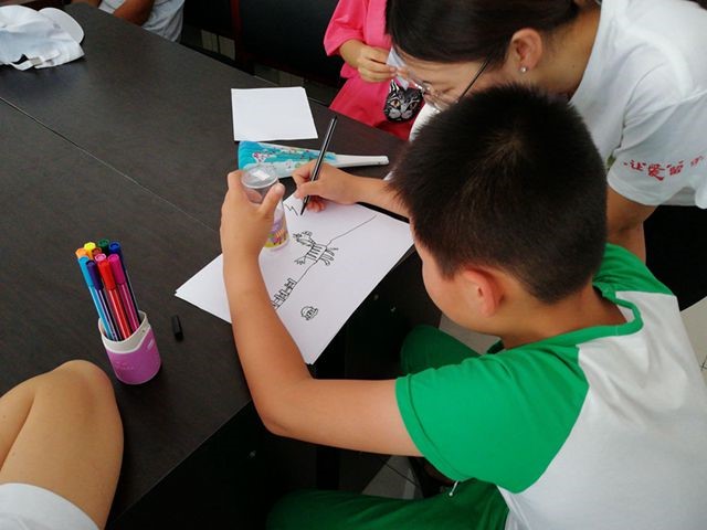 刚开始与志愿者接触时,一位七岁的小女孩由于对陌生环境不适应,开始嚎啕大哭。志愿者们赶忙蹲下身子耐心地对她进行劝说和安抚,在大家的一众努力下,小女孩停止了哭泣,对志愿者露出了灿烂的笑容。课堂上,小女孩主动拿起画笔开始作画,专心致志的模样让志愿者不愿去打扰,小女孩边画边与旁边的孩子在有说有笑,一节课下来她与班里的双胞胎姐妹花成了好朋友。课程结束后,她把作品递到一位志愿者的手中,“老师,谢谢你!”听到这句稚嫩而又铿锵有力的声音,志愿者心中充满了感动,并决心一定要给孩子带来最美好的课程体验,努力让孩子们变得更加快乐、更加优秀。