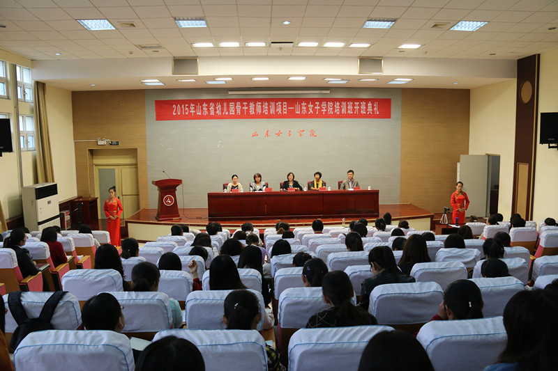 2015年10月21日上午山东省幼儿园骨干教师第五、六期培训班开班典礼在我院图书馆一楼报告厅举行。出席开班典礼的领导有山东女子学院副院长王淑霞教授和教师教育学院相关领导和老师,教师教育学院常务副院长、教育学院院长董吉贺主持开幕式。