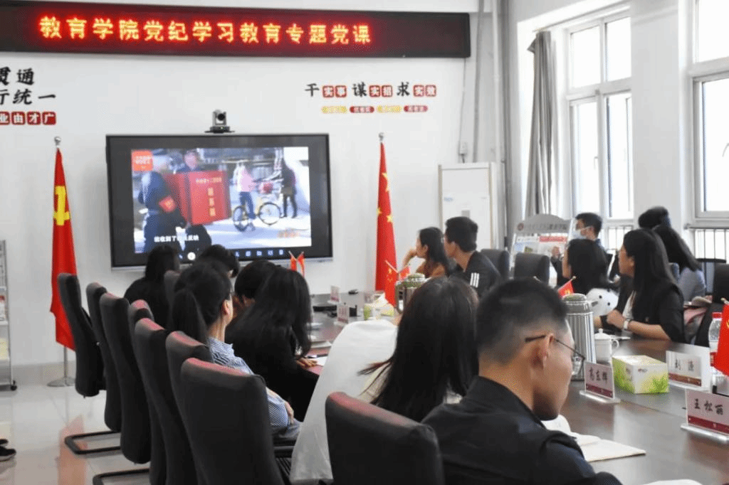 会议最后,师生党员共同观看了警示教育片,在触目惊心的典型案例、痛心疾首的反思忏悔、铁面无私的严肃查处中,接受教育和熏陶,自觉拧紧遵纪守法的“发条”,在奋斗路上永葆拒腐防变、清正廉洁本色。