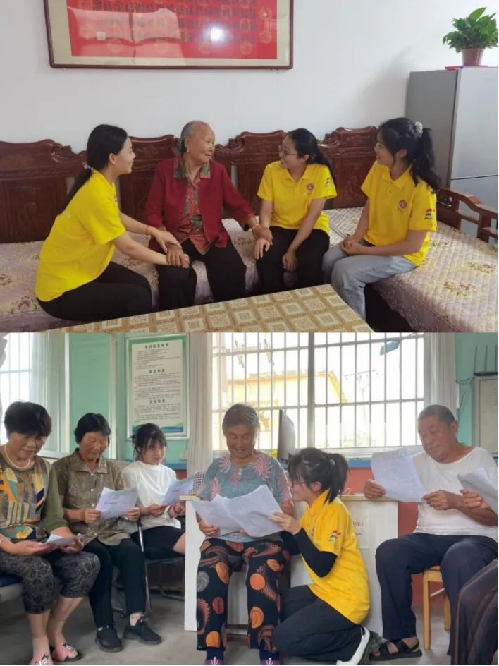 图为“爱之翼”乡村美育志愿服务团成员同老人进行交谈,对他们给予关怀和送温暖。