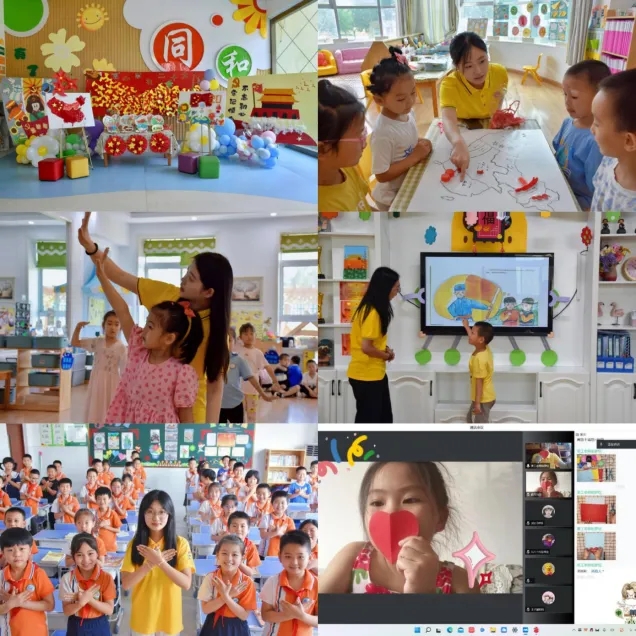 图为“爱之翼”乡村美育志愿服务团为孩子们带来美工、声乐、舞蹈、儿童剧等美育特色课程并开展了文艺表演、等系列活动。