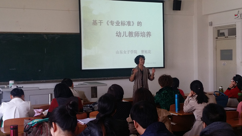 董旭花教授从《幼儿园教师专业标准(试行)》出台的背景讲起,依次阐述和解读了高校学前教育专业在幼儿园教师培养中的问题与挑战,详细的介绍了幼儿园教师专业标准的要求。和老师一起探讨了如何改进学前教育专业建设和课程教学,引发了全体教师的深度思考和热烈讨论。