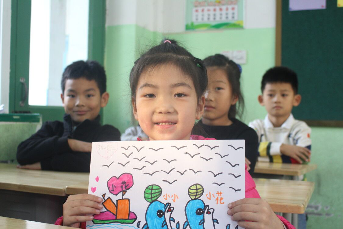 伴随着悠扬的铃声,孩子们端端正正的坐在了各自的位置上。一年级的孩子们在老师们的带领下复习上节课的内容:歌曲《幸福拍手歌》和《小手拍拍》,复习结束后,老师开始教孩子们新的歌曲:《小红帽》,孩子们高兴的跟着老师唱歌、拍手、跺脚、转圈,孩子们跟着节奏跳起老师上节课教的手势舞。美术课上的孩子们学习画海豚,每个孩子都认真的画着自己心目中的大海和海豚。操场上,孩子们正在学习跳健美操,在志愿者们耐心的指导下,孩子们的健美操跳的有模有样。舞蹈室里的孩子们跟着老师学习爵士舞,孩子们活力四射的舞姿透露着自信的气息。国学上,孩子们大声诵读《黄鹤楼送孟浩然之广陵》。