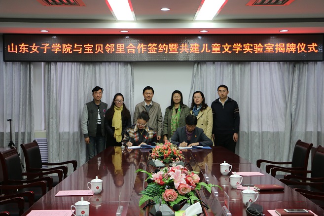 2016年11月1日下午,山东女子学院与宝贝邻里合作签约暨共建儿童文学实验室揭牌仪式在我校第三会议室举行。山东女子学院校长范素华、教务处副处长吕慎敏、教育学院院长董吉贺、教育学院党总支书记田莉春及有关教师参加签约仪式。